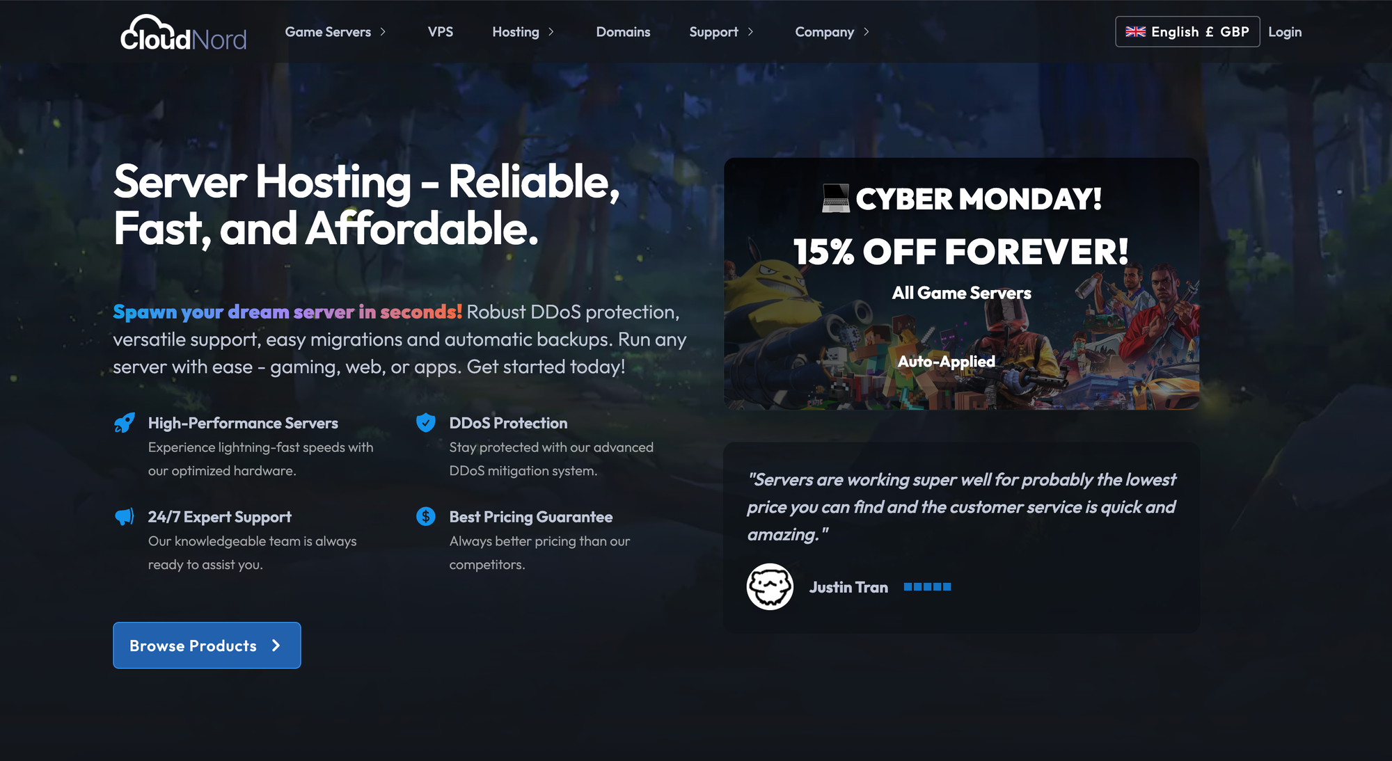 At CloudNord, we offer a variety of services built for everyone, from gamers running servers with friends to creators and businesses building something bigger. Whether you’re hosting a game, launching a project, or growing a community, we focus on keeping things fast, reliable, and easy to manage, with real support whenever you need it.