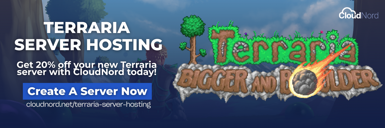 Terraria hosting is now live on CloudNord, fully optimized and ready to go. To celebrate, we’re offering 20% off all game hosting, including Terraria, so you can jump in with reliable performance and great value from day one.