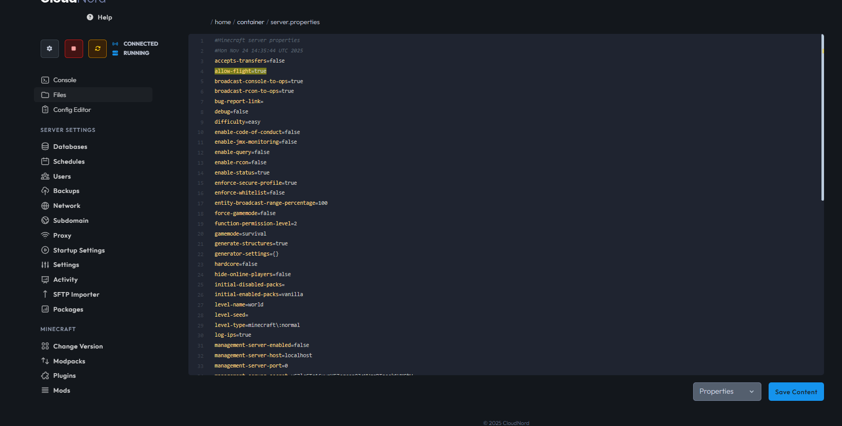 Steps to Allow Flight on CloudNord Minecraft Servers